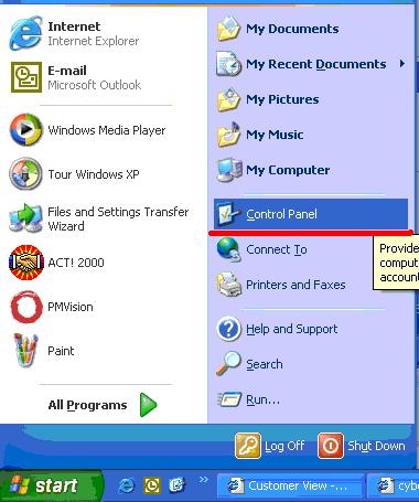 - Click the Start button, click Control Panel.