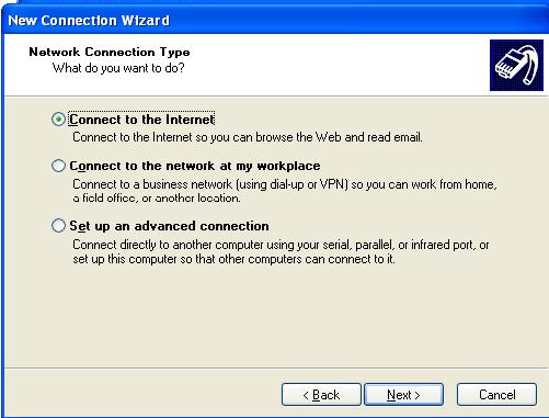 - Choose Connect to the Internet and then choose next