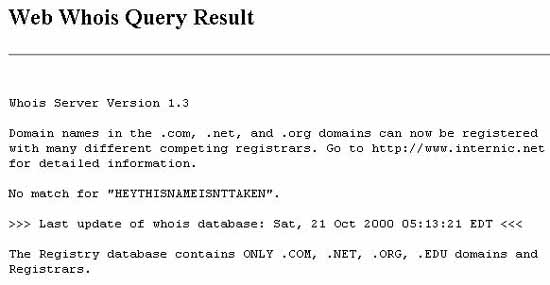 Below is an attempt to see if the domain name "heythisnameisnttaken.com"