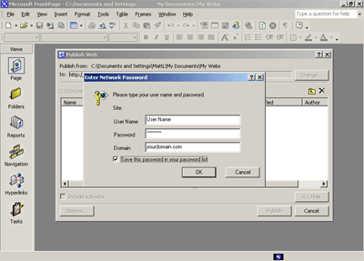 4. Enter your Username and FrontPage Password if required.